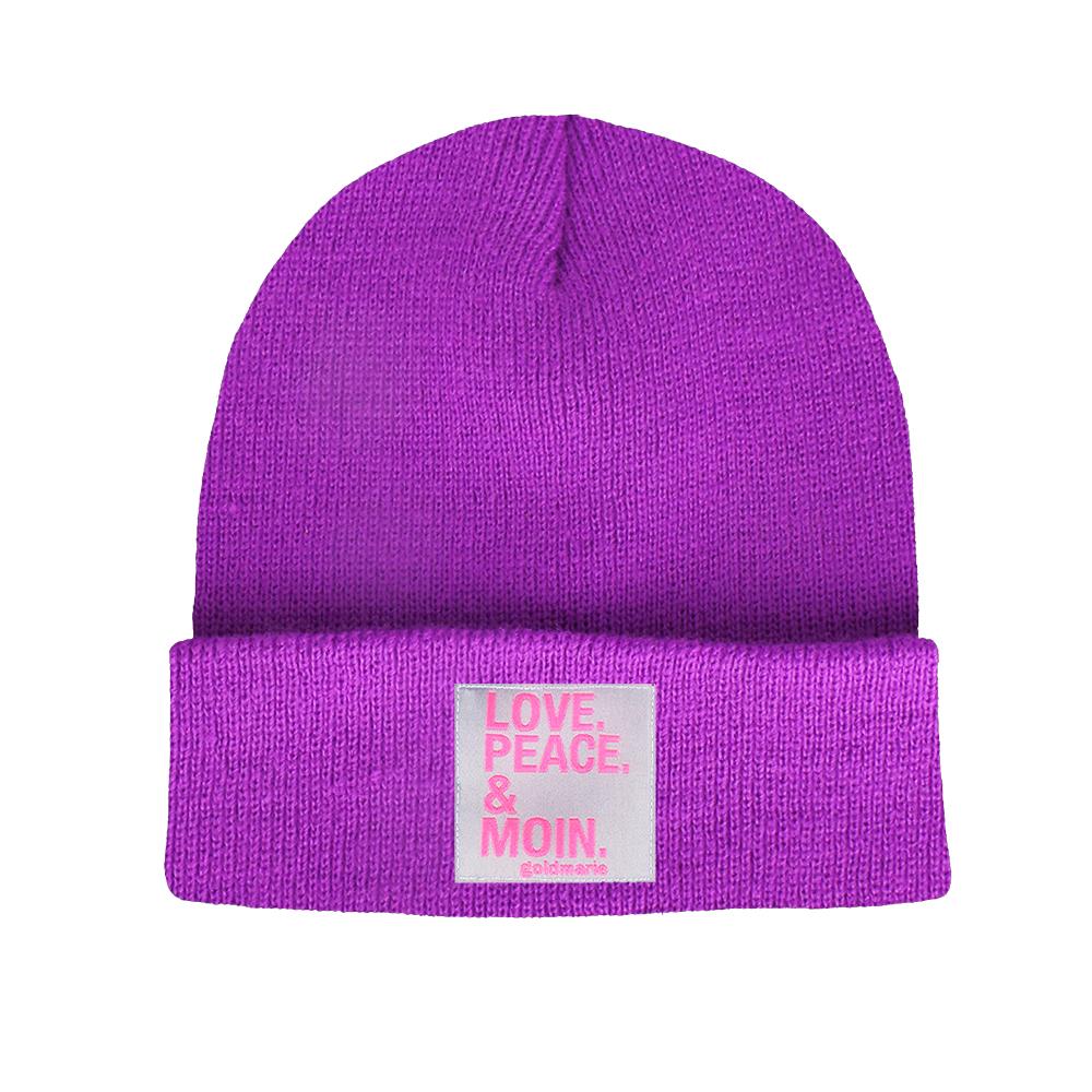 goldmarie Beanie Mütze LOVE PEACE MOIN Klassik- flieder