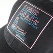 goldmarie Cap mit LOVE PEACE MOIN Applikation im Neonschrift Look (Farbe: schwarz, rosa, blau, weiß) gefertigt. Das Cap ist vielseitig stylebar und durch eine Schnalle ganz einfach größenverstellbar.