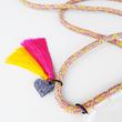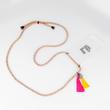 goldmarie Handykette "HERZ BABE" aus Nylon geflochten, mit Plexi Herz Anhänger (Kunststoff, Farbe: grau-glitzer), doppel Fransenbommel (100% Nylon, 1 x pink, 1 x gelb) und Kunststoff Handyhülle inklusive LOVE PEACE MOIN Aufkleber gefertigt (Farbe Aufkleber: transparent-schwarz - Bei Bedarf ist der LOVE PEACE MOIN Aufkleber von der Handyhülle abnehmbar). Die Handykette ist mit einem Ziehverschluss größenverstellbar und vielseitig stylebar z.B. casual mit Sneakers & Hoody oder lässig elegant mit Kleid, Jumpsuit, Jeans und High Heels, z.B. um den Hals oder über die Schulter tragbar usw.