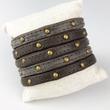 goldmarie Armband aus Leder gefertigt, im STRIPE-Design mit Nieten verziert. Das Armband ist durch einen Nietenverschluss verschließbar und vielseitig stylebar.