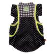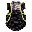 goldmarie Kinder Kleid LOVE PEACE MOIN (Label im Nacken, Farbe: grau, gelb) aus weicher Viskose, im "Pepita & Punkte" Mustermix gefertigt, mit kurzen Ärmeln im Krempel-Look (mit Perlmuttknopf) und dekorativen PomPom-Spitzen-Borte Verzierung (Farbe: creme-gelb). Das Kleid hat zwei Eingriffstaschen sowie einen Mini-Stehkragen mit einer kleinen Knopfleiste (3 kleine Perlmuttknöpfe) zum Verschließen.