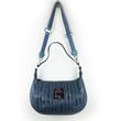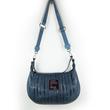 goldmarie LOVE PEACE MOIN Handtasche im Lamellen Look designed, aus weichem Leder im Vintage Look gefertigt, farblich abgestimmtes Innenfutter aus Baumwolle (Farbe: blau) und abnehmbaren Taschenriemen (Nylon mit Leder Details, Farbe: taubenblau, creme). Die Tasche ist mit einem Reißverschluss aus Metall verschließbar (Farbe: grau-silber used Look) und ist innen in der Tasche mit 2 Taschenfächern (davon 1 x Stück mit Reißverschluss) ausgestattet. Die Handtasche kann bei Bedarf mit einem Druckknopf im "Taschenbeutel" Look gestylt werden.