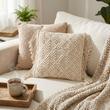 goldmarie Deko Kissenbezug im MACRAMEE Design und mit Fransen gefertigt. Die Rückseite ist im schlichten Baumwollstoff im Natur Look. Das Kissenbezug ist mit einem Reißverschluss verschleißbar sowie vielseitig stylebar, z.B. als dekoratives Kuschelkissen auf dem Sofa oder als Dekoration auf dem Tagesbett. Das Kissenbezug wird ohne Füllkissen geliefert.