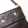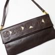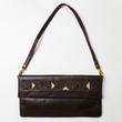 goldmarie Handtasche aus Leder im Vintage Look und mit Dreieck-Muster gefertigt. Die Tasche ist mit einem magnetischen Druckknopf verschließbar und innen mit einem großen sowie einem kleinen Taschenfach mit Reißverschluss ausgestattet sowie 6 x integrierten Kartenfächern und einem Taschenfach außen mit Reißverschluss. Der abnehmbare Taschenriemen aus Leder bietet verschiedene Styling Möglichkeiten, so kann die Tasche je nach Bedarf als Schultertasche oder Clutch getragen werden.
