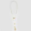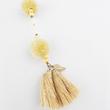 Handgefertigte goldmarie Kette im filigranen Perlenketten DUO Look, mit Pompoms, Fransen-Quasten aus Nylon und Metall-Blatt (Farbe: gold) gefertigt. Die Kette ist vielseitig stylebar z.B. im casual Look mit Jeans und Sneakers oder lässig elegant mit Kleid und High Heels.