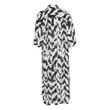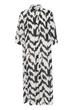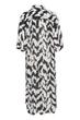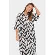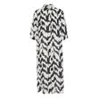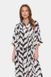 Midikleid aus weichem Webstoff von der Marke Saint Tropez im weit geschnittenen Hemdblusen Design, mit plakativen Muster und durchgehender Knopfleiste gefertigt. Das Kleid ist gerade in der Silhouette geschnitten und vielseitig stylebar.