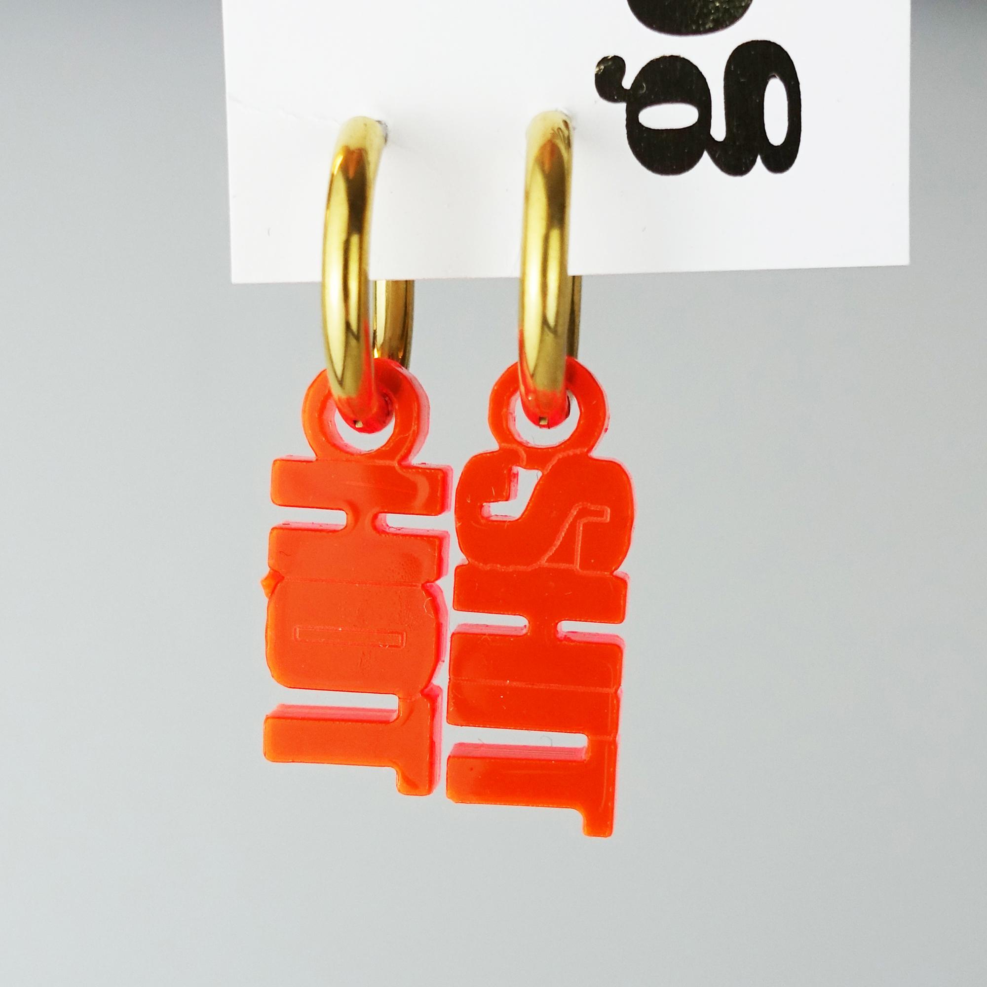 goldmarie Ohrringe HOT SHIT - Plexi Buchstaben - orange neon