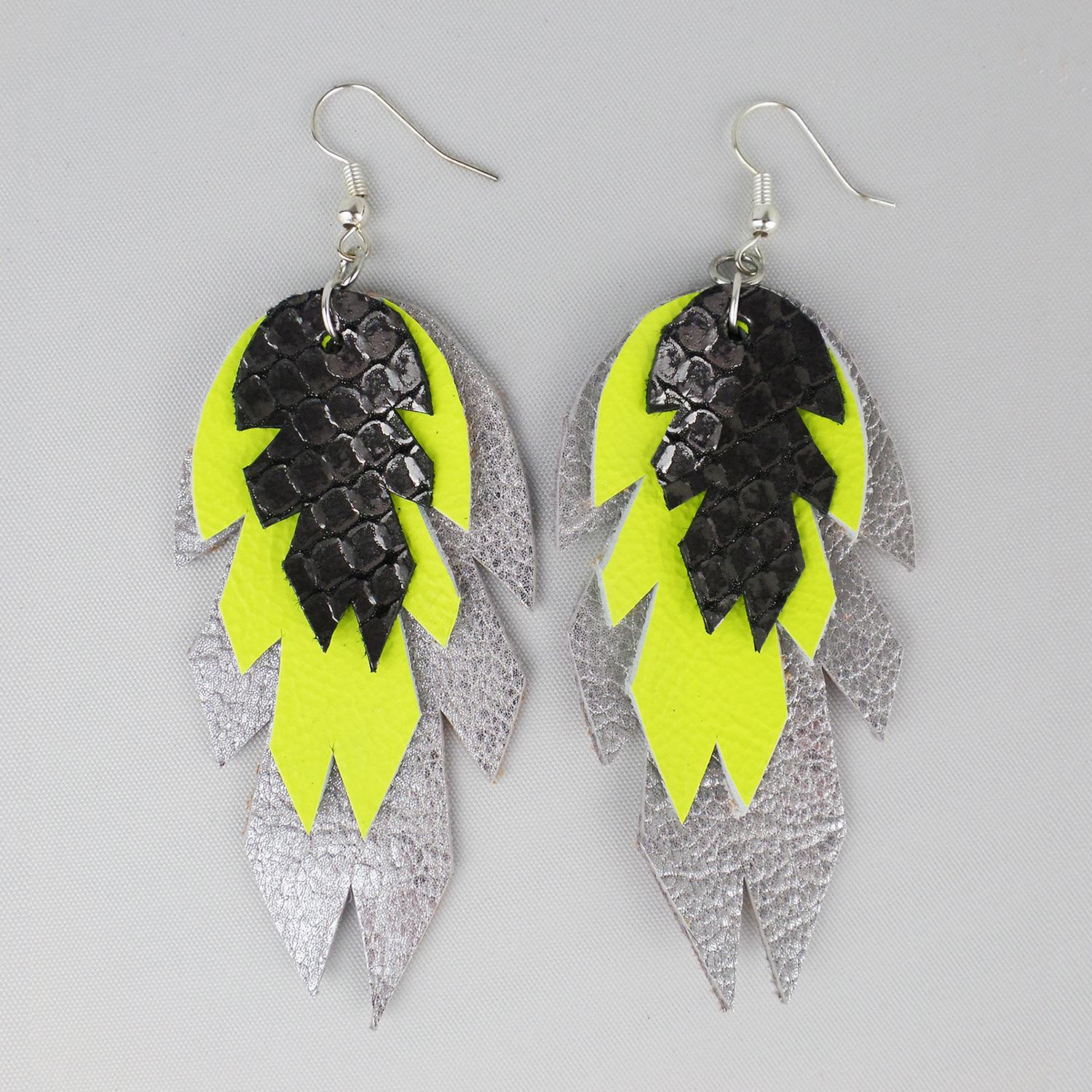 goldmarie Ohrringe LEAF BABE Leder silber-schwarz-neon-gelb