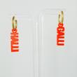 Handgefertigte goldmarie Ohrringe aus Plexi im HALLI GALLI Schriftzug Design gefertigt. Der Schriftzug hängt jeweils an einer Creole aus Stahl, die vergoldet ist.