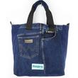goldmarie MOINGIORNO Shopper Tasche aus recycelten Jeanshosen gefertigt. Die Tasche ist innen mit einem farbigen Stoff gefüttert und kann bei Bedarf "auf Links" gestylt werden (Tasche ist reversible). Die Tasche hat ein großes Haupttaschenfach und mehrere kleine Einsteckfächer (die "Jeanshosen-Taschen" sind nutzbar), zudem sind zwei Schlaufen an beiden Seiten angebracht, zur Befestigung für einen zusätzlichen Taschenriemen (Taschenriemen ist nicht in der Lieferung enthalten).