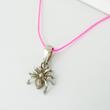 goldmarie Kette mit Mini Spinne Anhänger aus 925er Silber und filigranen pinken Nylonband als Kettenband gefertigt.