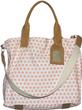 Shopper aus bedrucktem Canvas-Stoff mit Lederhenkeln und abnehmbaren Schulterriemen. Taschen Boden partiell mit Leder verstärkt. Großes Einsteckfach innen. Label auf der Vorderseite. Schließbar mit Lederriegel und Druckknopf. Lederanhänger mit Klarsichtfenster.