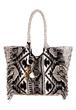 Shopper Tasche von der Marke Smitten im Mustermix, mit Fransen und PomPom-Anhänger gefertigt. Die Tasche ist mit einem Magnetknopf verschließbar und innen mit drei Taschenfächern ausgestattet, eins davon mit einem Reißverschluss. Der Shopper ist vielseitig nutzbar z.B. als Strandtasche, Handtasche, Yogatasche oder zum Einkaufen sowie vieles mehr.
