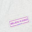 goldmarie I BELIEVE IN DISCO T-Shirt (New Edition Label auf der Brust, Farbe: weiß, flieder, rosa) mit V-Ausschnitt gefertigt. Das Top ist angenehm zu tragen und feminin in der Passform.