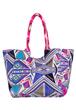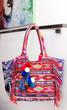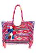 Shopper Tasche von der Marke Smitten im Mustermix, mit Fransen und PomPom-Anhänger gefertigt. Die Tasche ist mit einem Magnetknopf verschließbar und innen mit drei Taschenfächern ausgestattet, eins davon mit einem Reißverschluss. Der Shopper ist vielseitig nutzbar z.B. als Strandtasche, Handtasche, Yogatasche oder zum Einkaufen sowie vieles mehr.