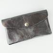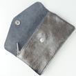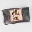goldmarie Portemonnaie aus Leder mit "LOVE PEACE MOIN" - Leo Motiv als Applikation (Farbe: lilac, gelb, schwarz) gefertigt. Das Portemonnaie ist mit einem Druckknopf verschließbar und mit drei Taschenfächern (eins davon mit Reißverschluss verschließbar) im Innenbereich ausgestattet.