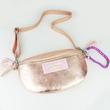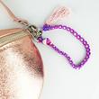 goldmarie Gürteltasche aus Leder im lässigen Hip Bag Design mit LOVE PEACE MOIN-Applikation (Neon Look Label, Farbe: lilac neon gelb), verstellbarem Taschenriemen aus Leder, Fransenbommel und MACRAMEE Taschenanhänger aus Baumwolle und Nylon (Farbe: lila, pink, creme) gefertigt. Die Hip Bag Tasche ist mit einem Reißverschluss (Metall, Farbe: silber) verschließbar und mit einem großen Taschenfach sowie einem kleinen Steckfach innen ausgestattet. Vielseitig stylebar, z.B. als Schultertasche oder Umhängetasche ist das Hip Bag ein echtes Outfit-Highlight.