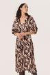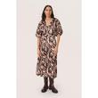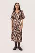 Kleid von der Marke SOAKED IN LUXURY gemustert und mit V-Ausschnitt gefertigt. Das Kleid ist feminin in der Passform, Midi in der Länge geschnitten und vielseitig stylebar z.B. im casual Look mit Sneakers oder lässig elegant mit High Heels.
